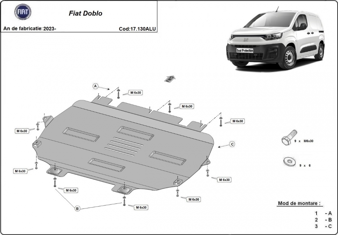 Aluminium skid plate for Fiat Doblo (2023-2026)