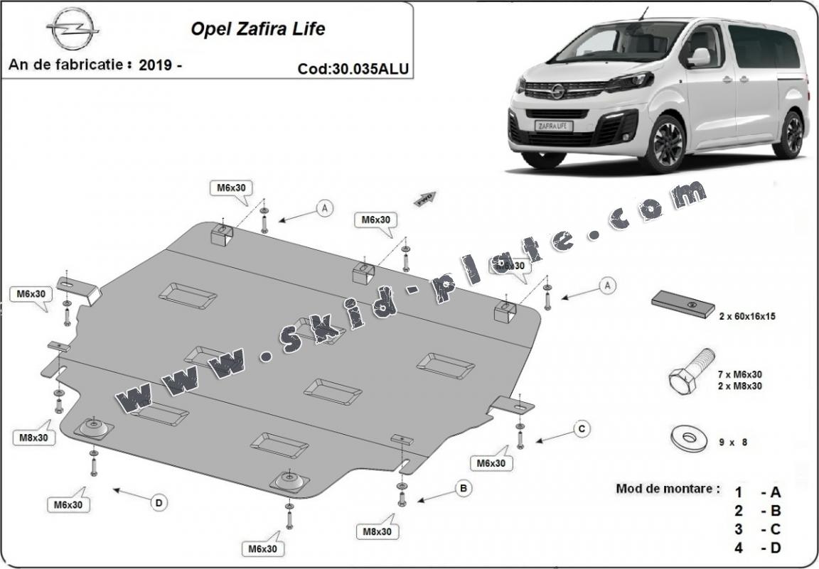 Aluminium skid plate for Opel Zafira Life (2019-2026)