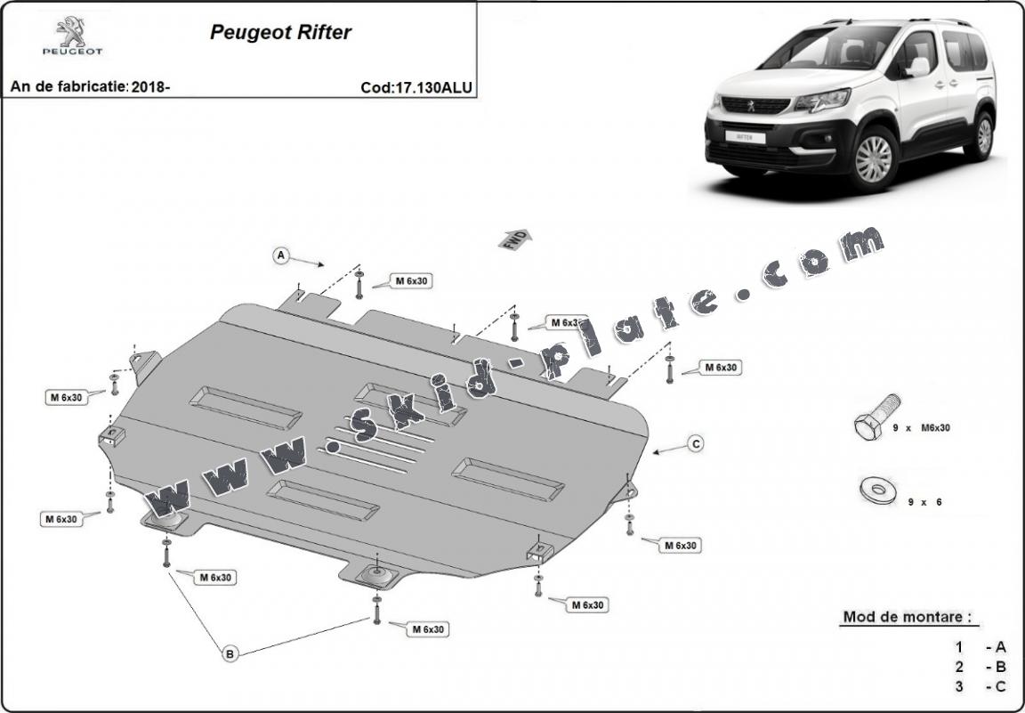 Aluminium skid plate for Peugeot Rifter (1980-1980)