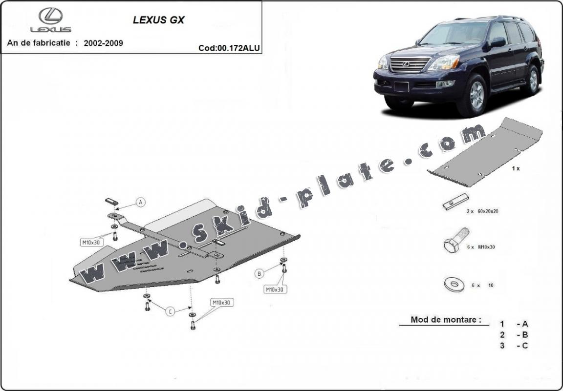 Aluminum gearbox skid plate for Lexus GX (2002-2009)