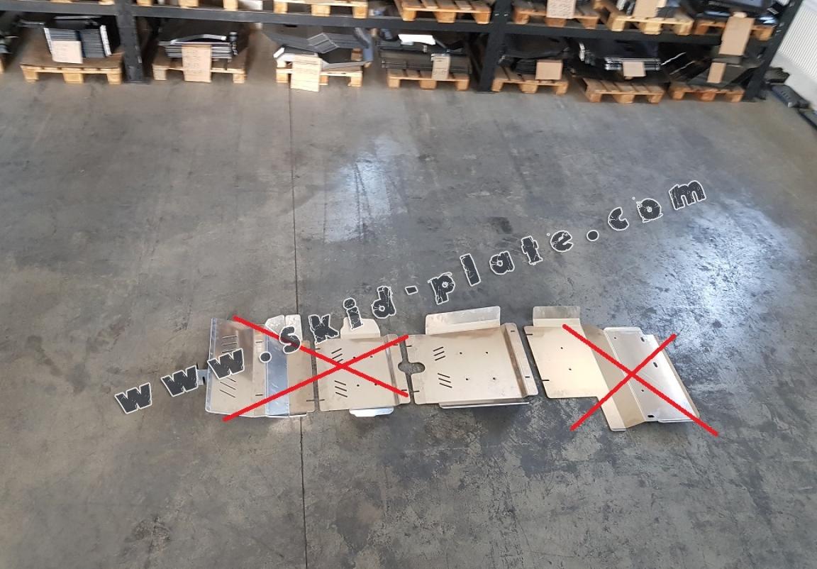 The exterior of the skid plate is provided with Aluminium reinforcements, which increases the resistance to impact.