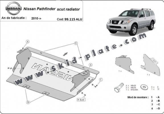 Aluminum radiator skid plate for Nissan Pathfinder (2010-2026)