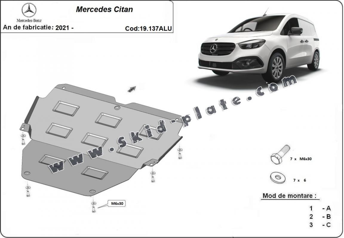 Aluminum skid plate for Mercedes Citan (2016-2026)