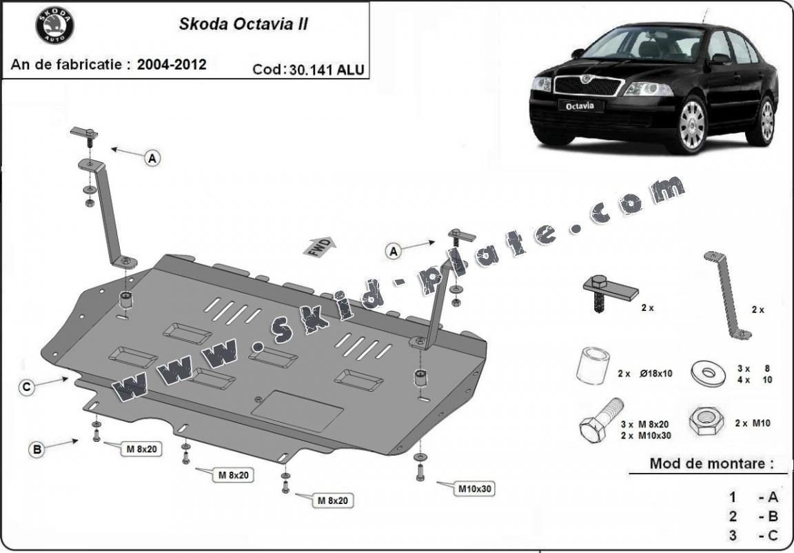 Aluminum skid plate for Skoda Octavia 2 (2004-2012)