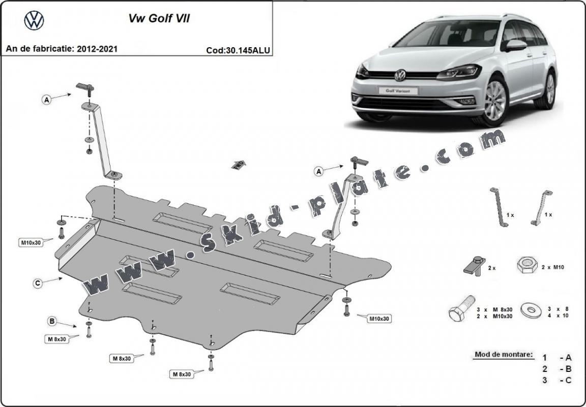 Aluminum skid plate for the protection of the engine and the gearbox for VW Golf 7 (2012-2021)