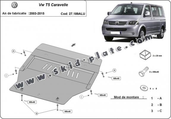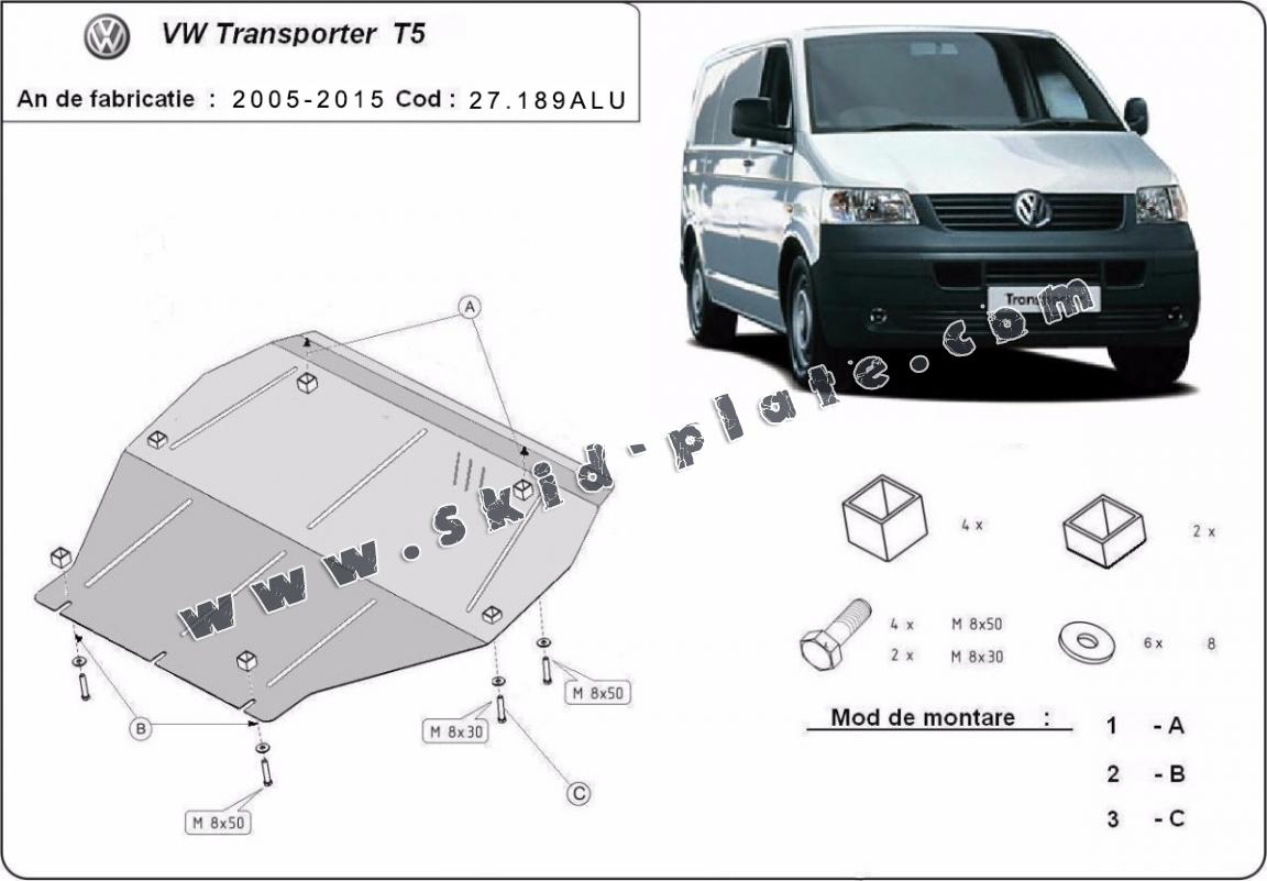 Aluminum skid plate for Volkswagen Transporter T5 Caravelle