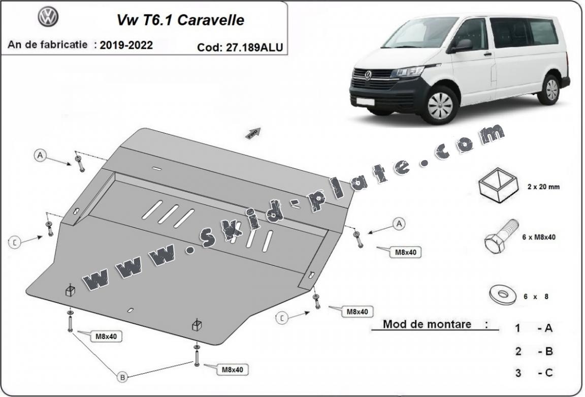 Aluminum skid plate for Volkswagen Transporter T6.1 Caravelle (2019-2022)