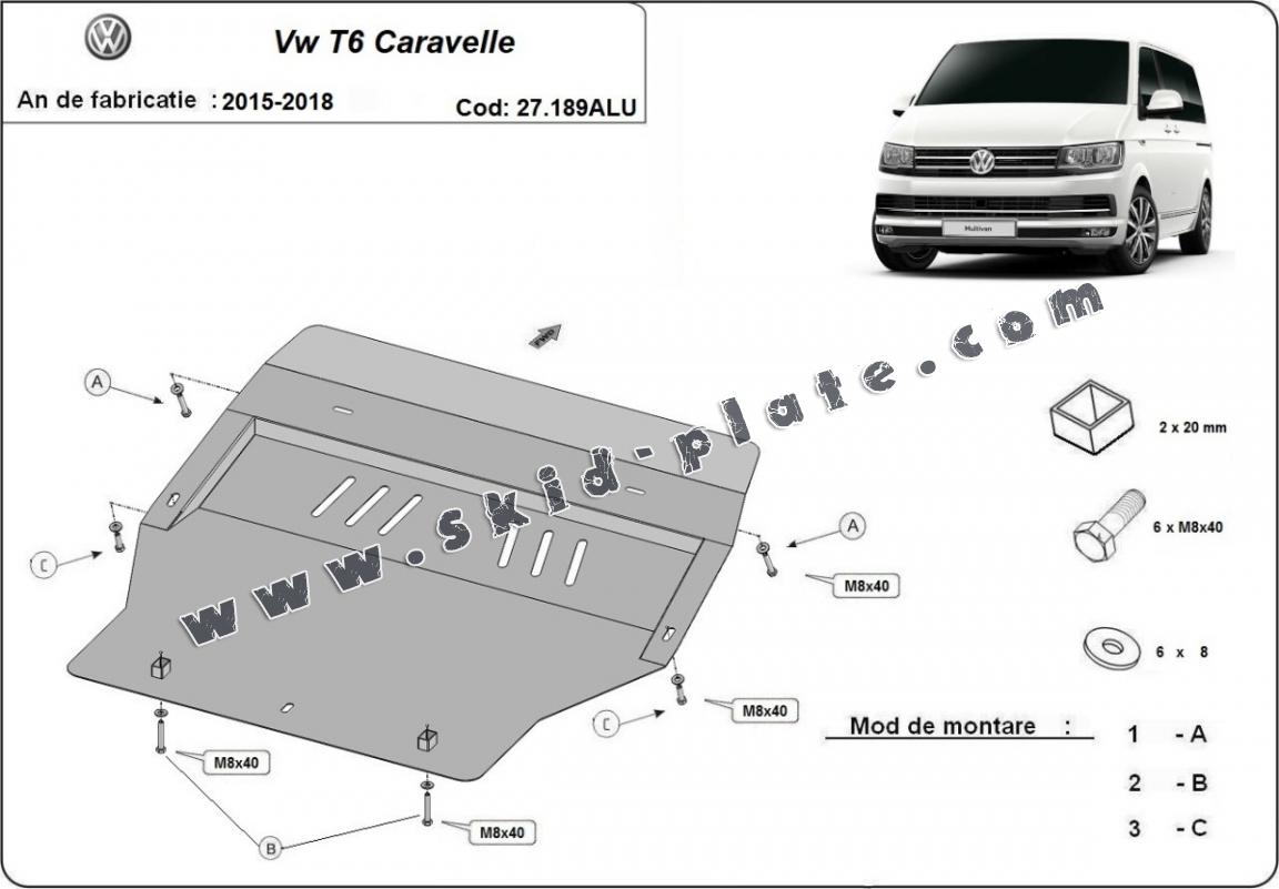 Aluminum skid plate for Volkswagen Transporter T6 Caravelle