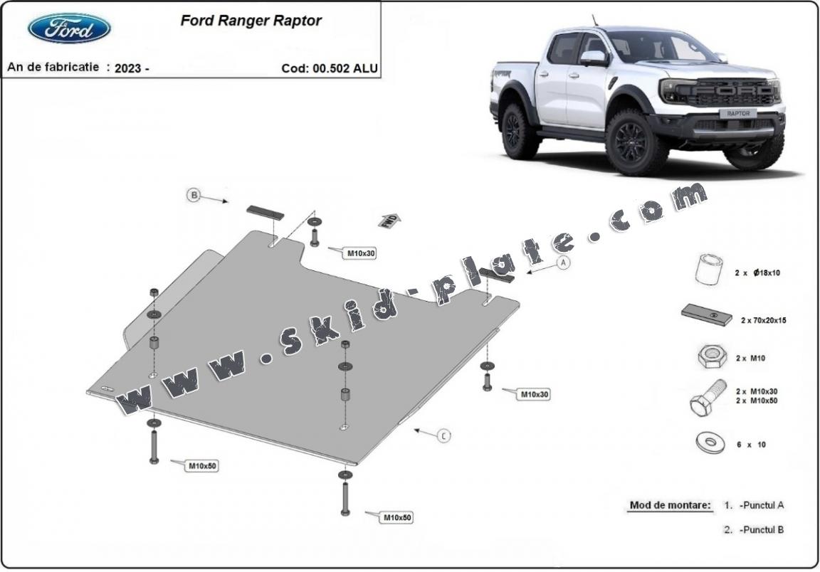 Aluminum transfer case skid plate for Ford Ranger Raptor (2023-2026)