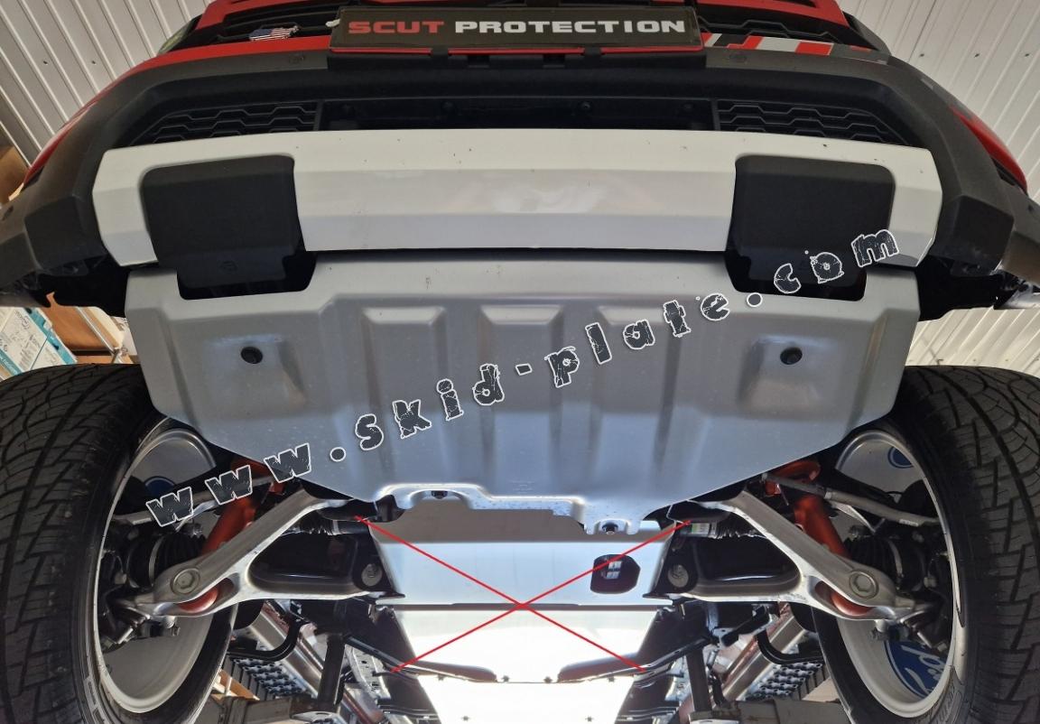 Skid plate for the protection of the: transfer case The skid plate is new and fits perfectly for all versions of Ford Ranger Raptor manufactured between 2023 and 2026. Made out of 4 mm thick Aluminium plate. The shields are made of aluminum, but the mounting brackets are made of steel. Screws, nuts, clips, all fastening accessories are included. All skid plates are powder coated to prevent corrosion. The exterior of the skid plate is provided with Aluminium reinforcements, which increases the resistance to impact. |