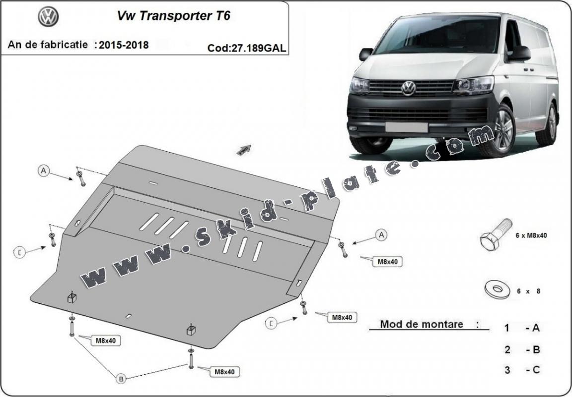 Galvanized steel skid plate for Volkswagen Transporter T6