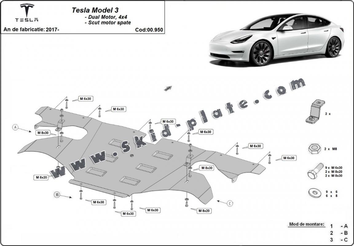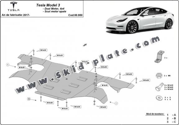 Rear electric motor skid plate for Tesla Model 3 AWD (2017-2026)