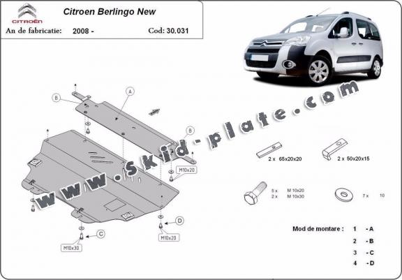 Steel skid plate for Citroen Berlingo (2008-2018)