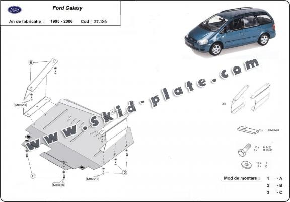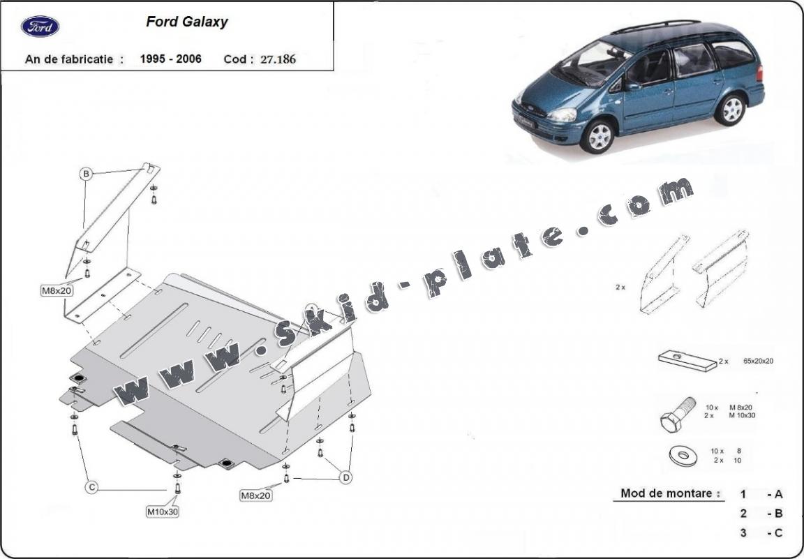 | The skid plate is new and fits perfectly for the Ford Galaxy 1, with the following engine/drive versions: 1.9, 2.0, 2.5, TDI - manufactured between 1995 and 2006. |