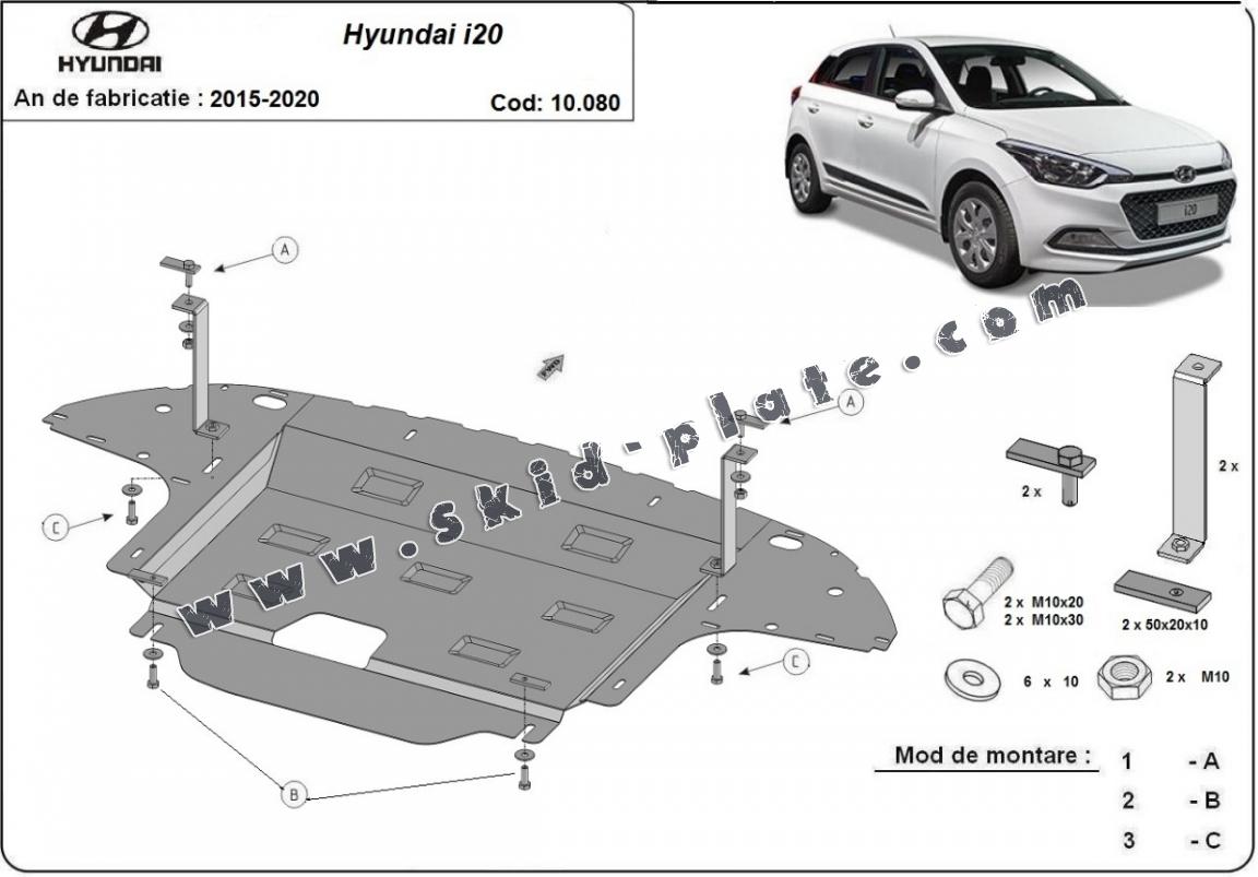 The skid plate is new and fits perfectly for the Hyundai i20, with the following engine/drive versions: - manufactured between 2015 and 2020.