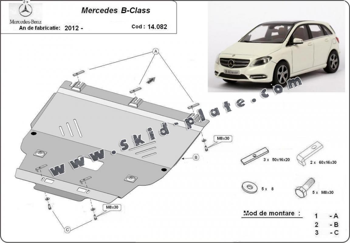 The skid plate is new and fits perfectly for the Mercedes B-Class W246, with the following engine/drive versions: - manufactured between 2012 and 2018.