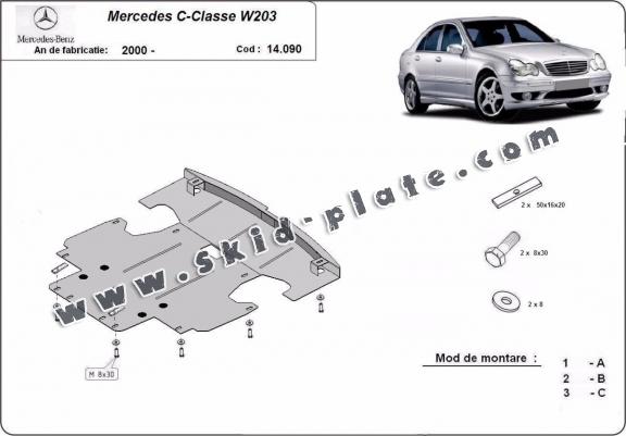 The skid plate is new and fits perfectly for the Mercedes C-Classe, with the following engine/drive versions: 2.0 , petrol - manufactured between 2000 and 2007.