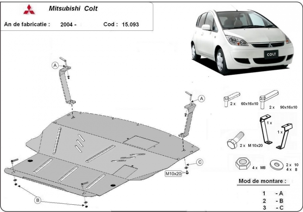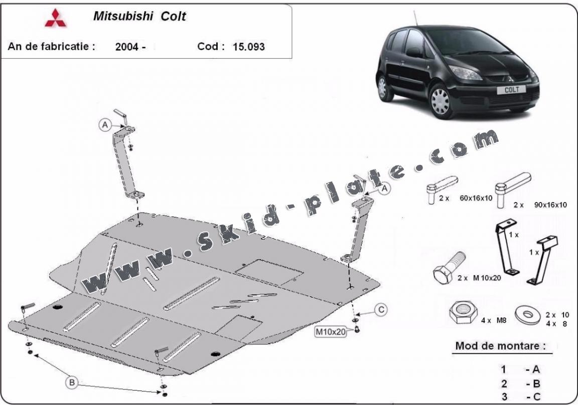 Steel skid plate for Mitsubishi Colt (2002-2013)