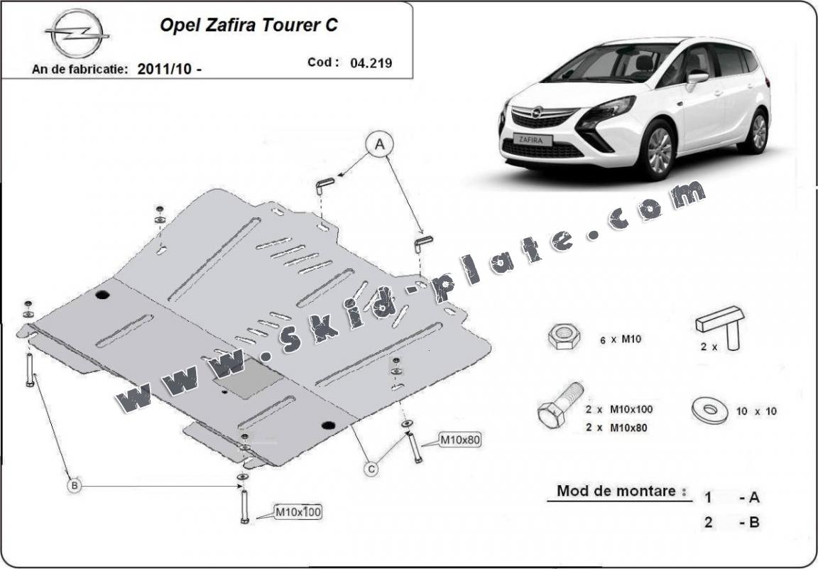 The skid plate is new and fits perfectly for all versions of Opel Zafira C manufactured between 2011 and 2019.
