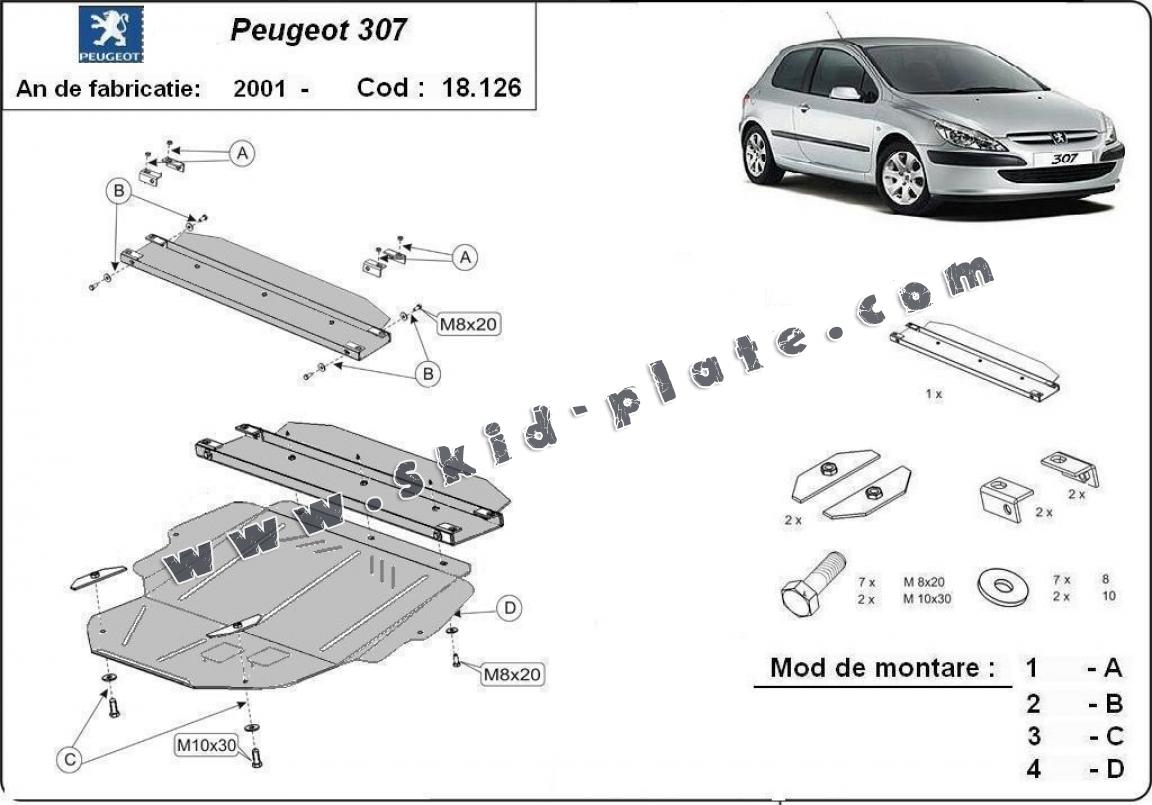 Steel skid plate for Peugeot 307 (2001-2008)