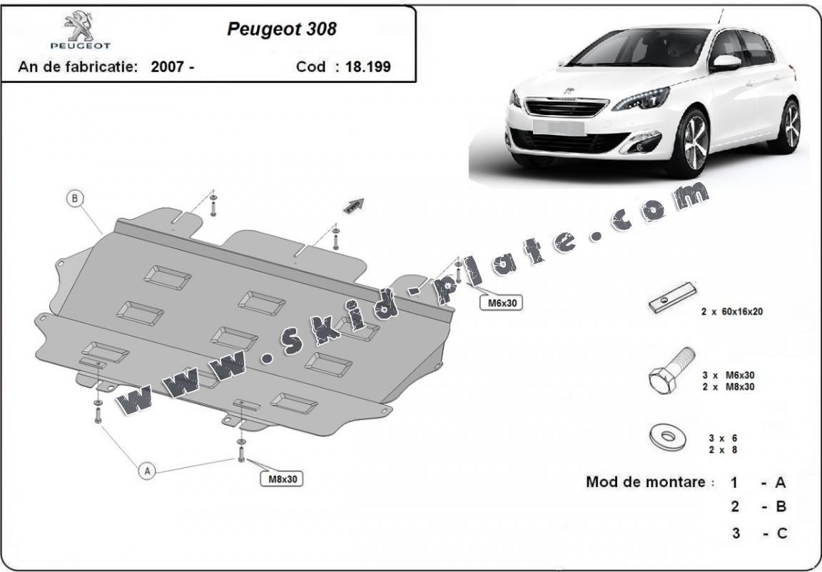 Steel skid plate for Peugeot 308 (2007-2017)