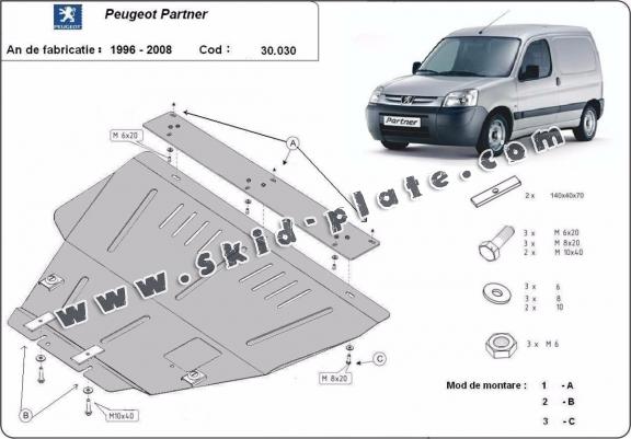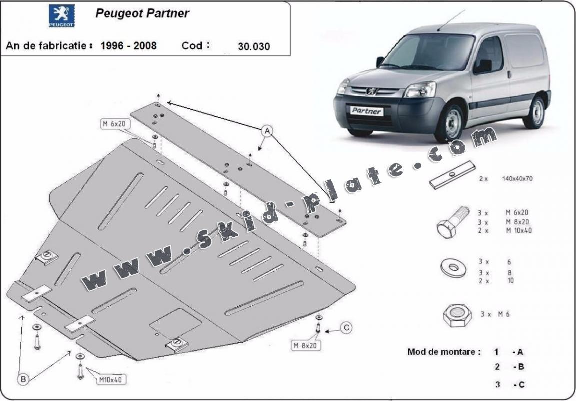 The skid plate is new and fits perfectly for all versions of Peugeot Partner manufactured between 1996 and 2008.