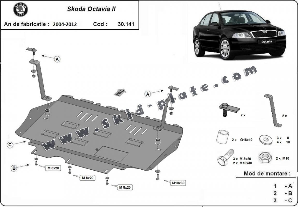 Steel skid plate for Skoda Octavia 2 (2004-2012)