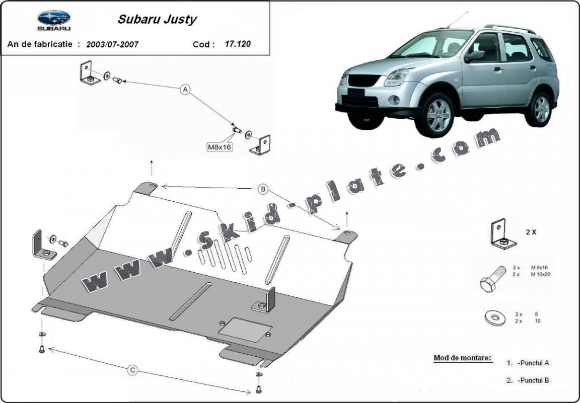 The skid plate is new and fits perfectly for the Subaru Justy, with the following engine/drive versions: - manufactured between 2003 and 2007.