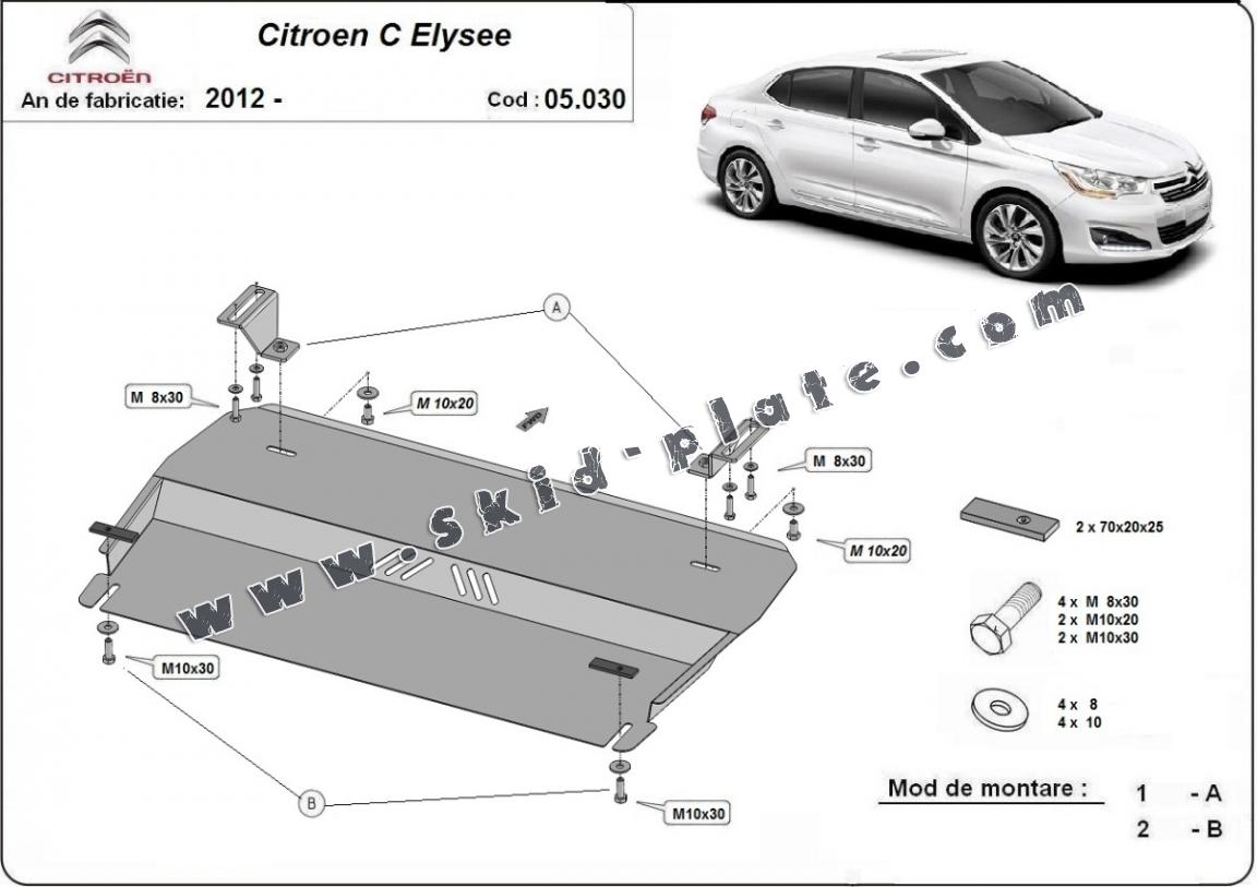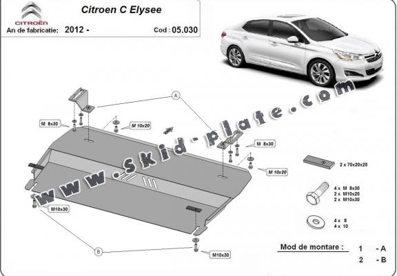 Steel skid plate for the protection of the engine and the gearbox for Citroen C-Elysee (2012-2026)