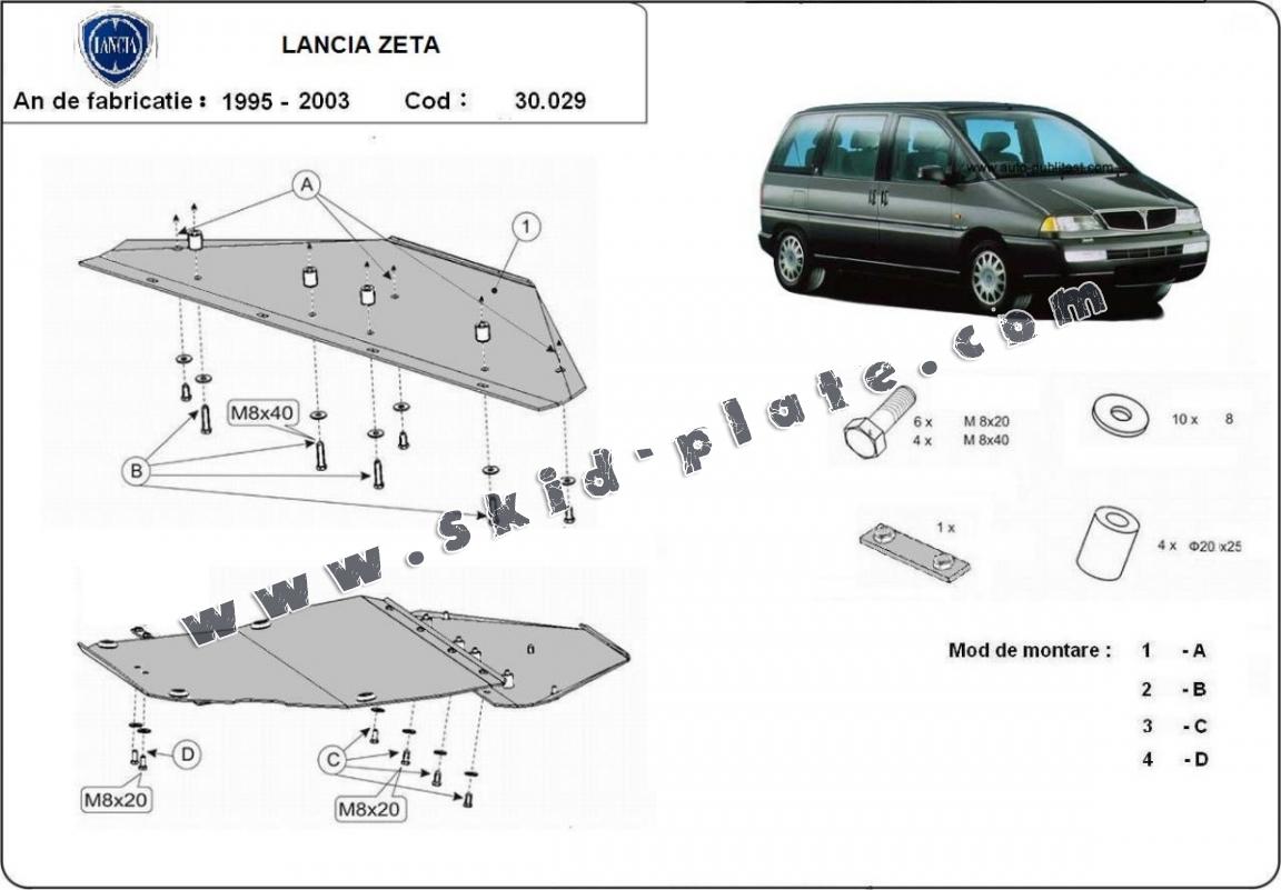 Steel skid plate for the protection of the engine and the gearbox for Lancia Zeta (1995-2003)