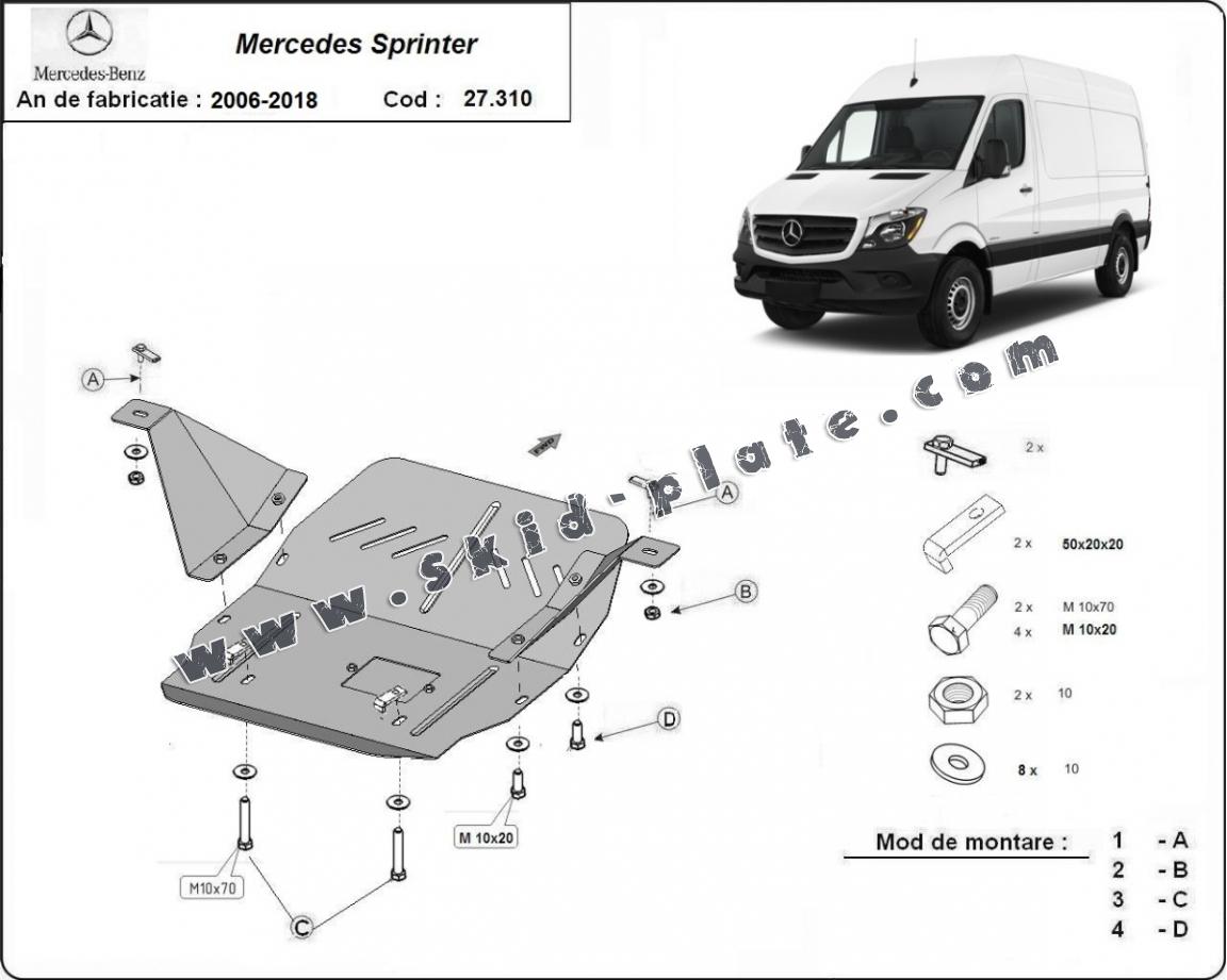Steel skid plate for the protection of the engine and the gearbox for Mercedes Sprinter