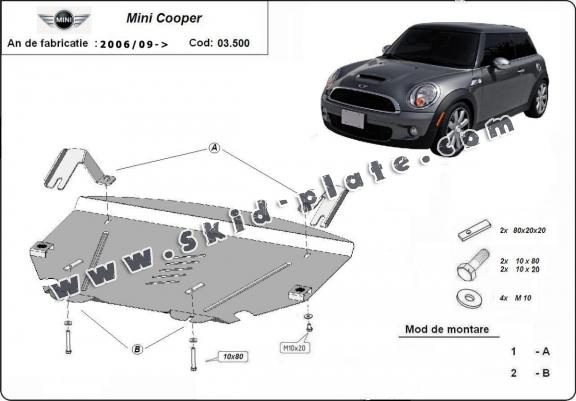 Steel skid plate for the protection of the engine and the gearbox for Mini Cooper R56