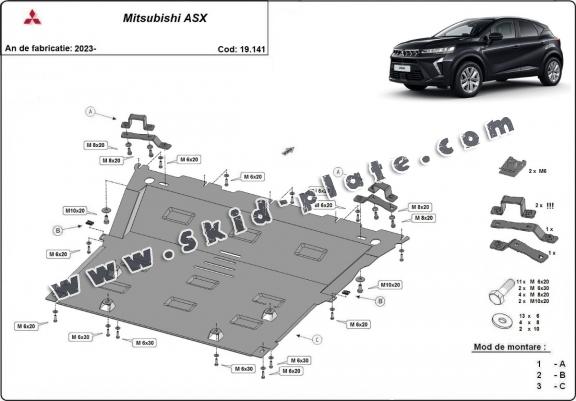 Steel skid plate for the protection of the engine and the gearbox for Mitsubishi ASX (2023-2026)