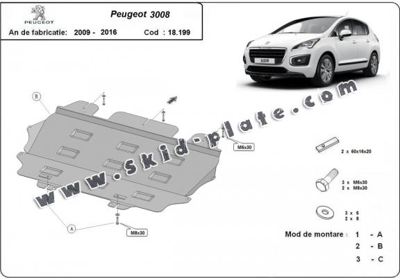 Steel skid plate for the protection of the engine and the gearbox for Peugeot 3008