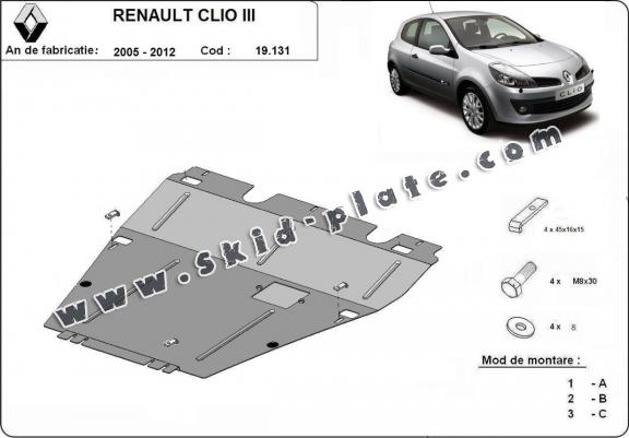 Steel skid plate for the protection of the engine and the gearbox for Renault Clio 3