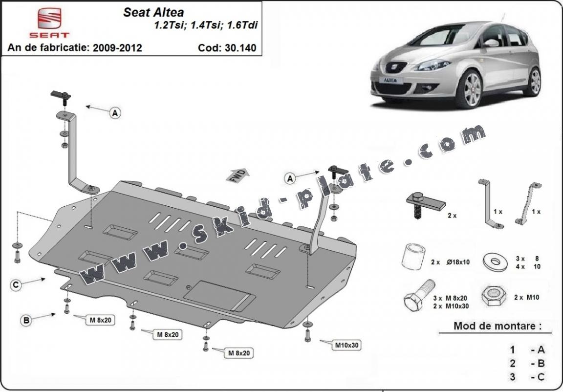 | The skid plate is new and fits perfectly for the Seat Altea, with the following engine/drive versions: 1.2,1.4Tsi,1.6Tdi - manufactured between 2010 and 2020. |