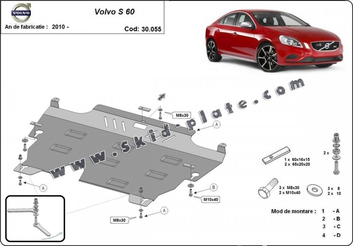 Steel skid plate for the protection of the engine and the gearbox for Volvo S60