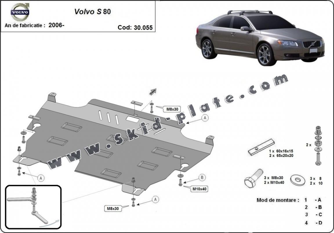 Steel skid plate for the protection of the engine and the gearbox for Volvo S80