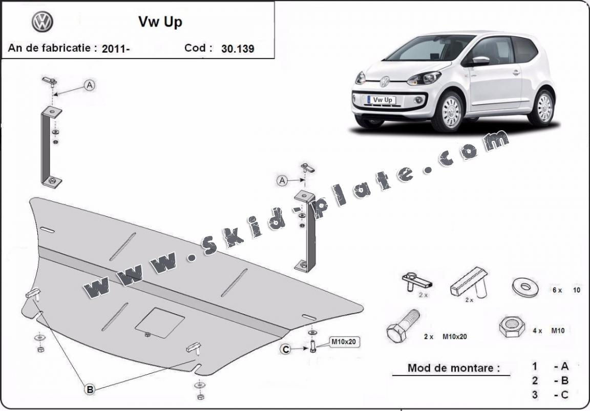 Steel skid plate for the protection of the engine and the gearbox for VW Up (2011-2026)