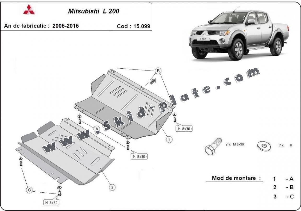 | The skid plate is new and fits perfectly for all versions of Mitsubishi L 200 manufactured between 2005 and 2015. |