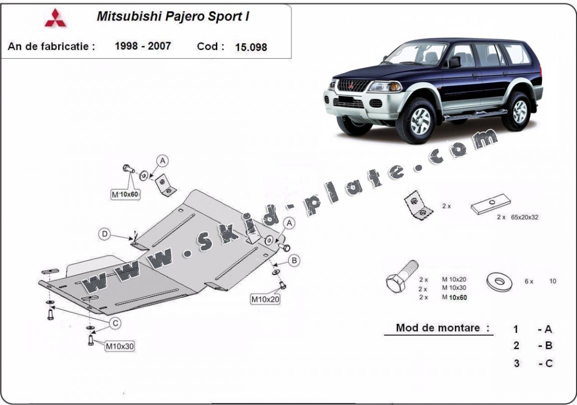The skid plate is new and fits perfectly for all versions of Mitsubishi Pajero Sport 1 manufactured between 1998 and 2007.