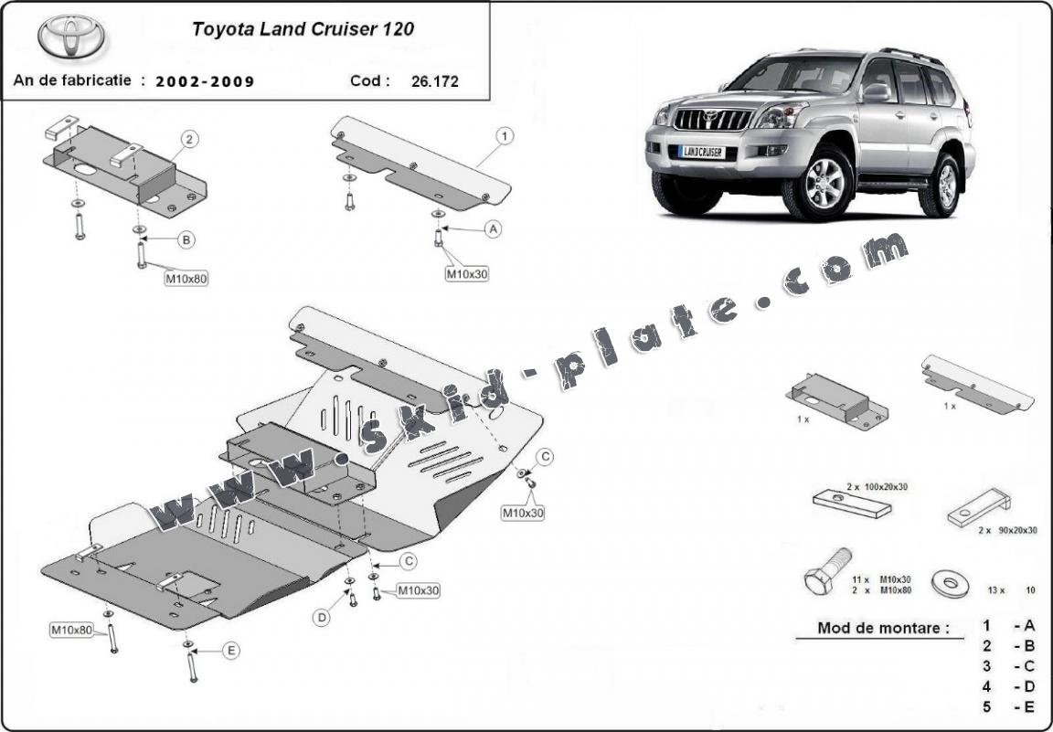 Steel skid plate for Toyota Land Cruiser J120