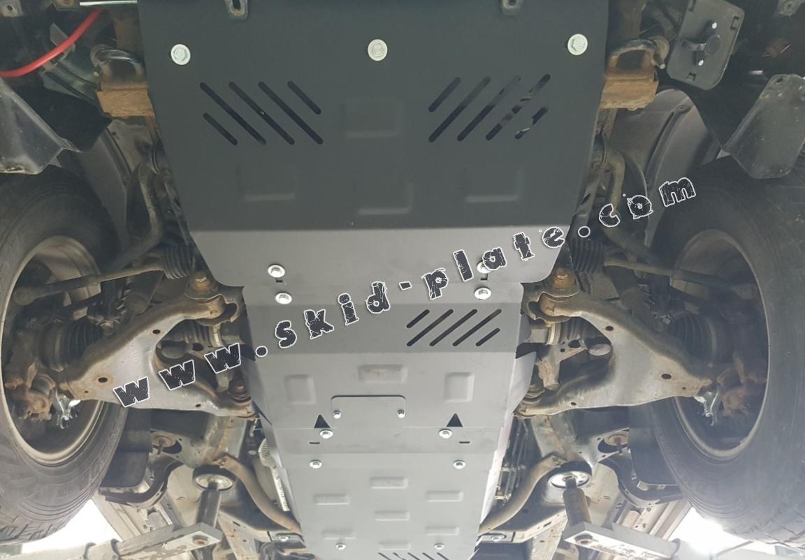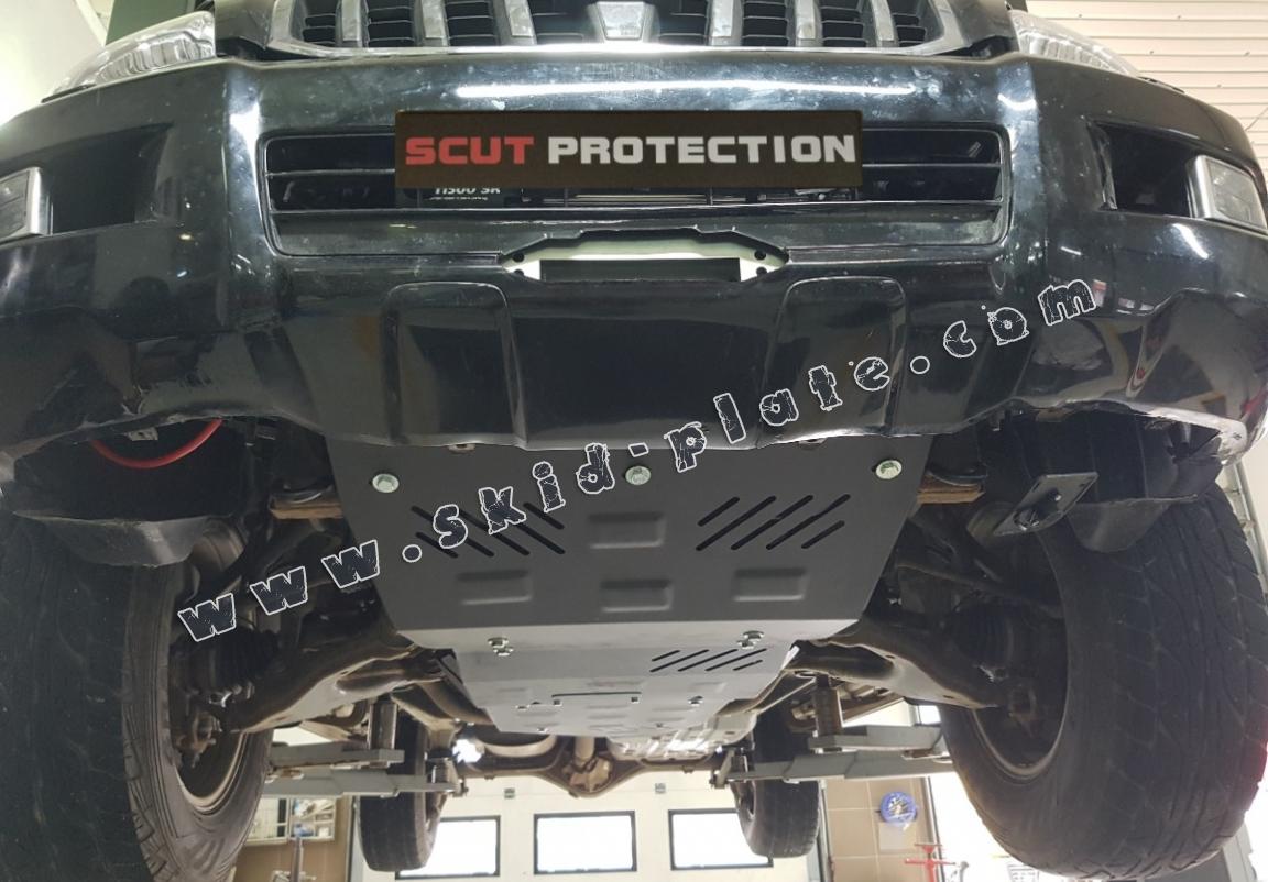 Skid plate for the protection of the: engine, radiator The skid plate is new and fits perfectly for the Toyota Land Cruiser J120, with the following engine/drive versions: 3.0,4.2 D - manufactured between 2002 and 2009. It has an opening for the oil sump, so it's removal won't be necessary to change the oil. Made out of 2,5 mm thick Steel plate. Screws, nuts, clips, all fastening accessories are included. All skid plates are powder coated to prevent corrosion. The exterior of the skid plate is provided with Steel reinforcements, which increases the resistance to impact. |