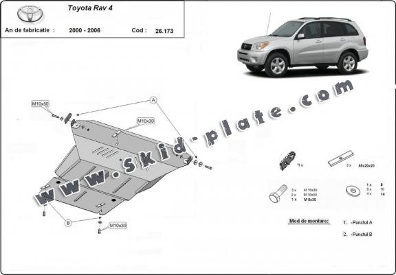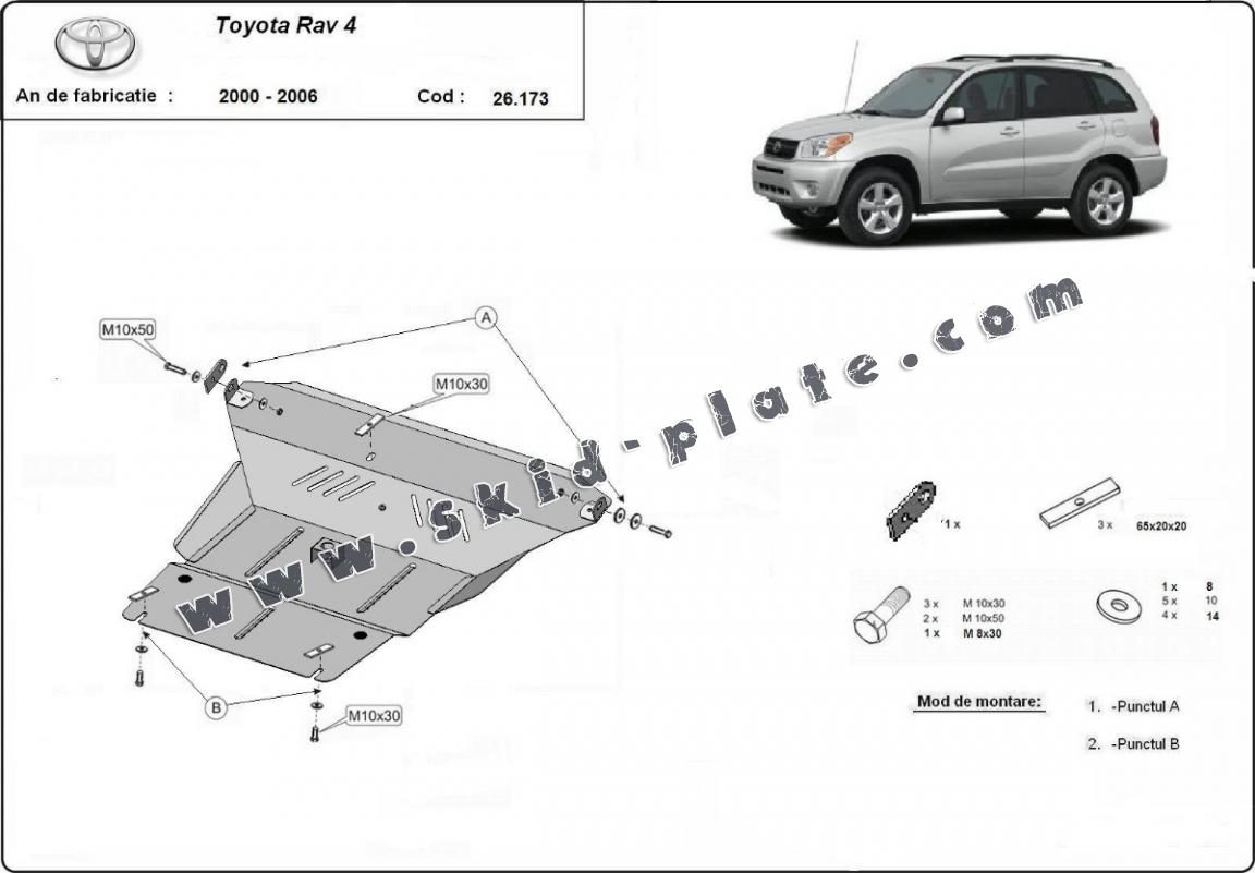 | The skid plate is new and fits perfectly for the Toyota Rav4, with the following engine/drive versions: 2.0 - manufactured between 2000 and 2006. |