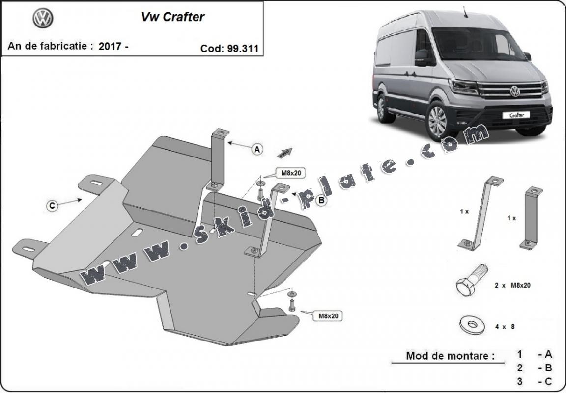 Skid plate for the protection of the: fuel tank AdBlue The skid plate is new and fits perfectly for all versions of Volkswagen Crafter manufactured between 2017 and 2020. Made out of 2 mm thick Steel plate. Screws, nuts, clips, all fastening accessories are included. All skid plates are powder coated to prevent corrosion. The exterior of the skid plate is provided with Steel reinforcements, which increases the resistance to impact. |
