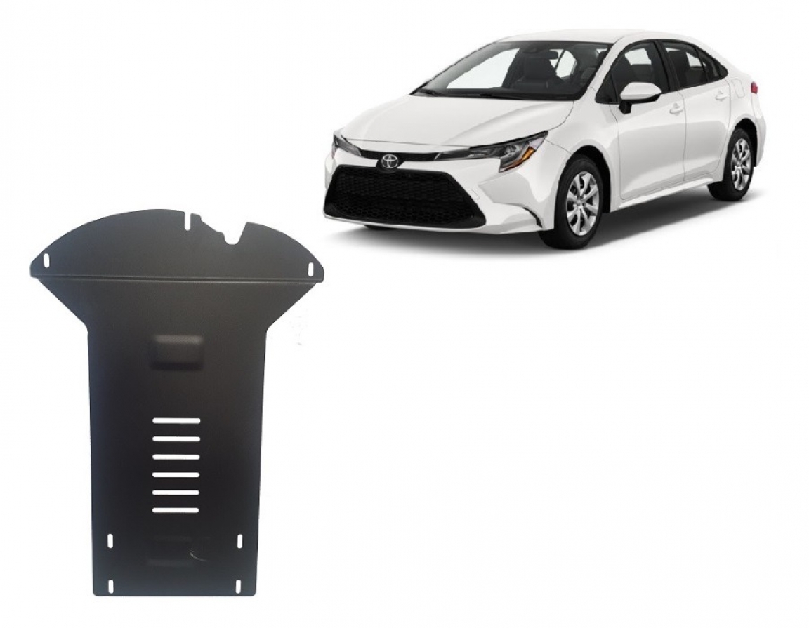 Skid plate for the protection of the: Catalytic converter The skid plate is new and fits perfectly for all versions of Toyota Corolla manufactured between 2019 and 2026. Made out of 2 mm thick Steel plate. Screws, nuts, clips, all fastening accessories are included. All skid plates are powder coated to prevent corrosion. The exterior of the skid plate is provided with Steel reinforcements, which increases the resistance to impact. |