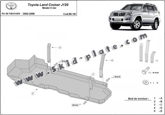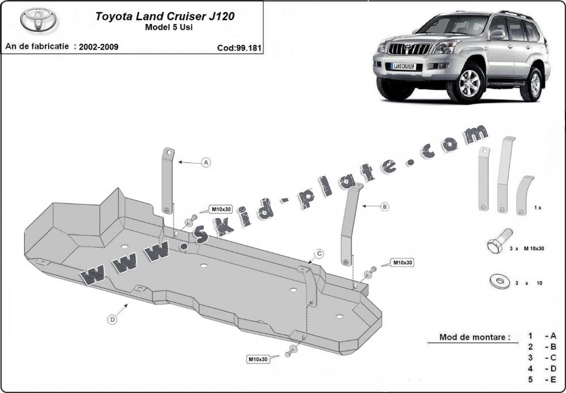 Steel fuel tank skid plate for Toyota Land Cruiser J120 - for 5 doors model (2002-2009)