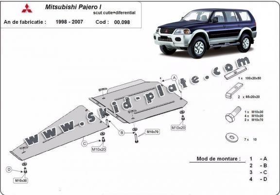 Steel gearbox and differential skid plate for Mitsubishi Pajero Sport 1 (1998-2007)