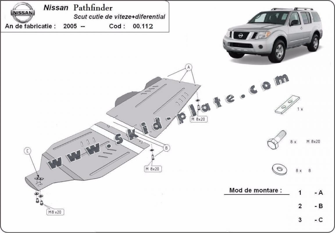 Steel gearbox and differential skid plate for Nissan Pathfinder (2005-2015)