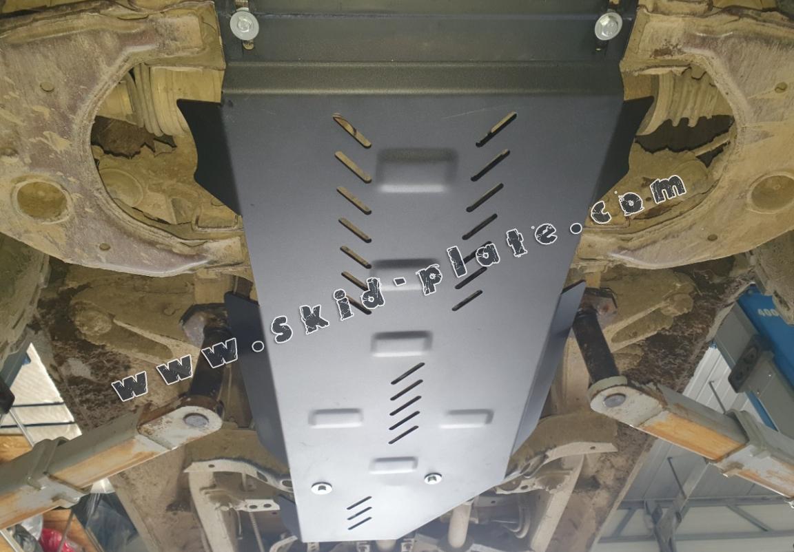 The exterior of the skid plate is provided with steel reinforcements, which increases the resistance to impact.